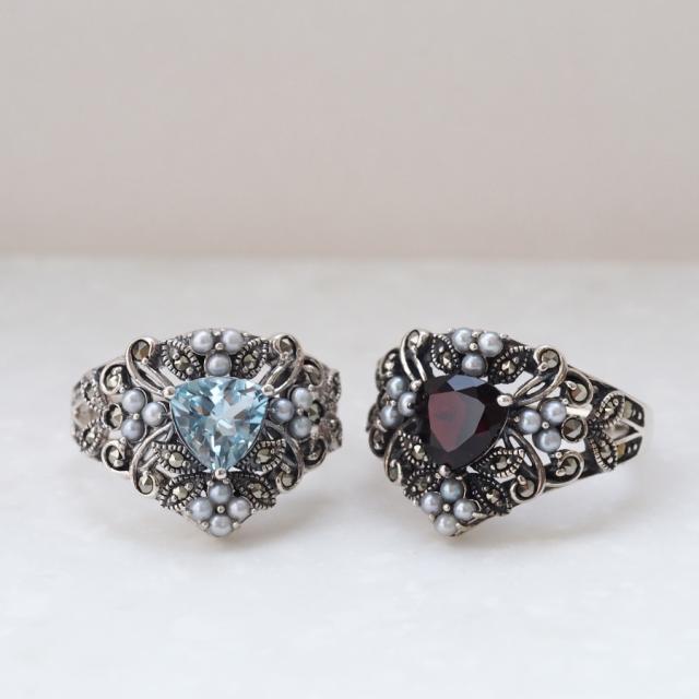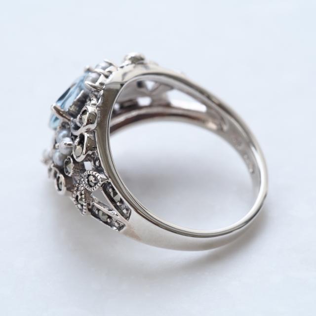 ROKUZAN ブルートパーズ シードパール リング 指輪 11〜17号 シルバー925 ブルートパーズ パール 真珠 マーカサイト 碌山ジュエリー ブランド