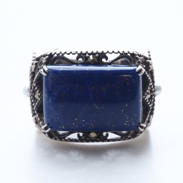 大ぶりなスクエアのラピスラズリをクラシカルなリングに仕上げました。