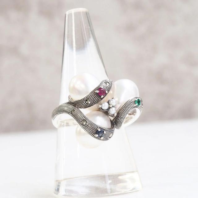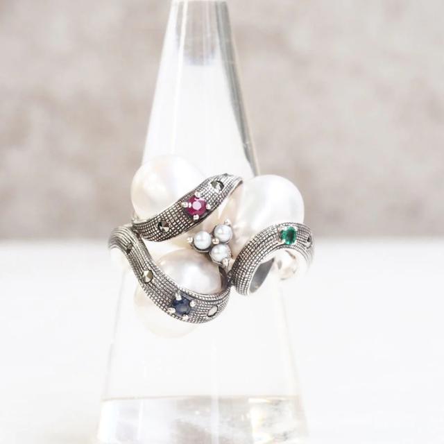 ROKUZAN パール プレシャスストーン モダン リング 指輪 11〜17号 シルバー925 エメラルド ルビー サファイア マーカサイト パール 真珠