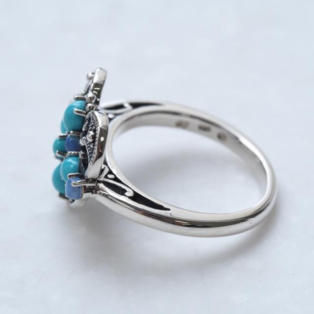 パステルブルーのターコイズと遊色効果のオパールがさわやかな印象で優しく指元を飾ってくれます。
