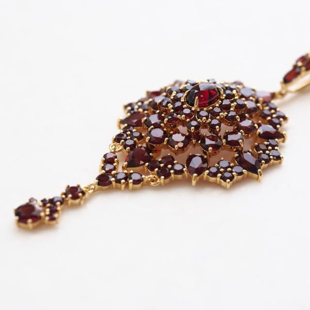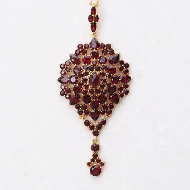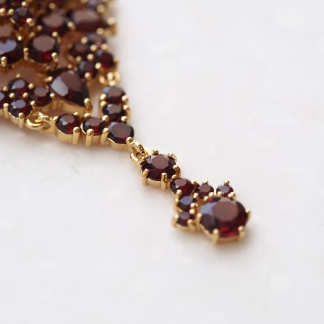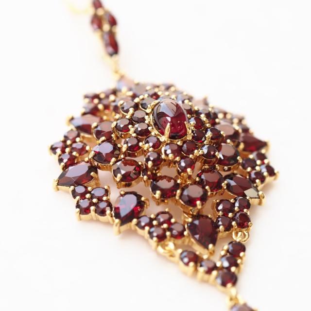ガーネットジュエリーの大作で碌山らしさのあふれる一品です。本物のアンティークジュエリーを分解したこともある長年の研究の末に完成した碌山こだわりの作りを生かしたエレガントな立体感と上質感が魅力です。