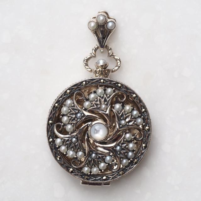 懐中時計を思わせるロケットペンダントです。