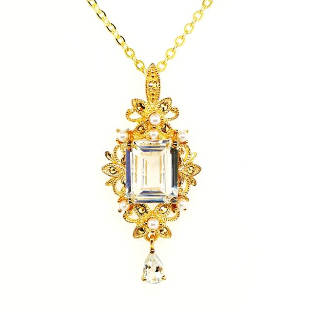 ROKUZAN ホワイトトパーズ クラシカル ペンダント ペンダントトップ (チェーンなし) ネックレス トップ ヘッド シルバー925 ゴールドプレーティング