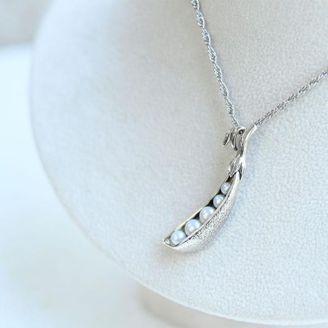 ラッキービーンズパールペンダントは、ビーンズの房をモチーフにしたシルバー製のペンダントです。