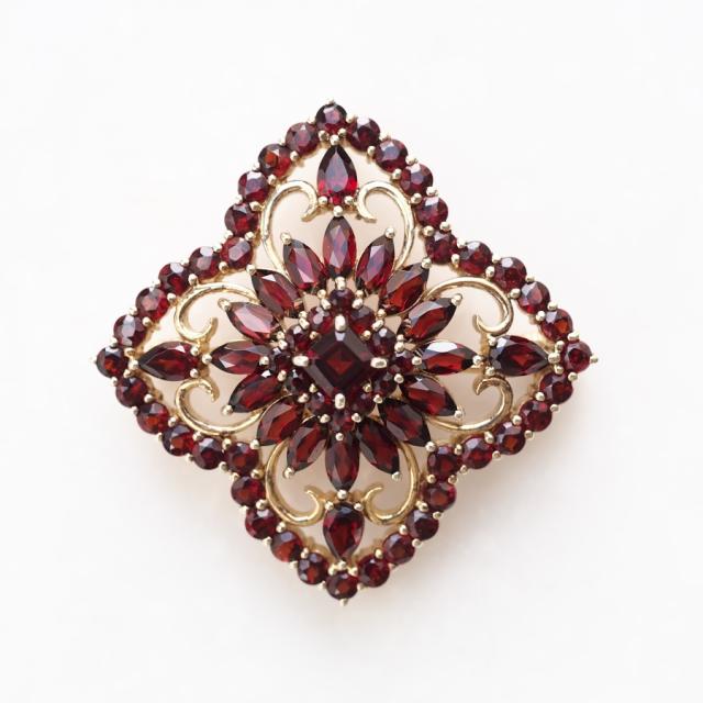サイズやカットの異なるガーネットをふんだんに使用したペンダントブローチです。