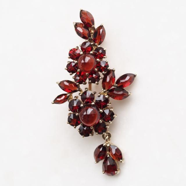 ラウンドカボション、マーキス、ペアシェイプ、ラウンドカットと様々なカットのガーネットをふんだんに使い、贅沢に仕上げました。