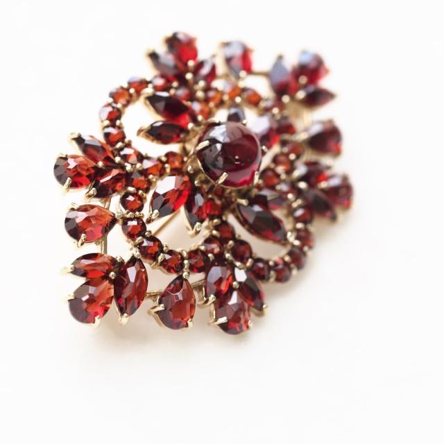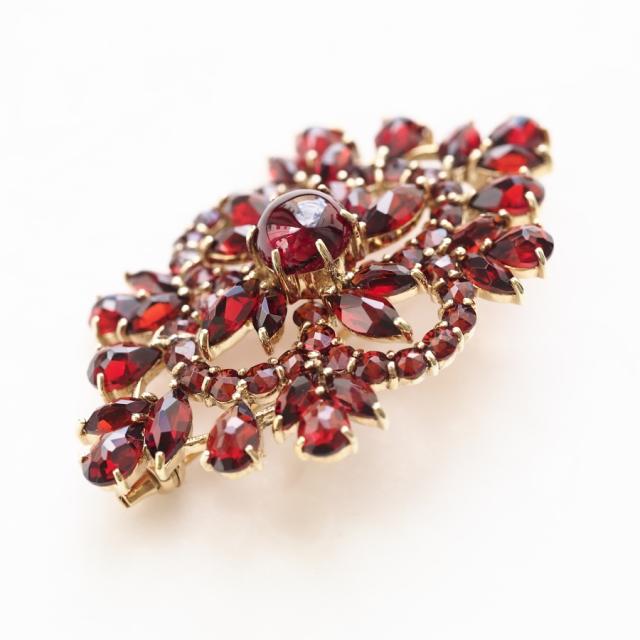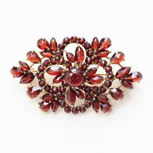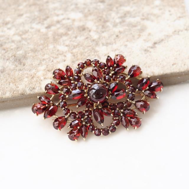 透かしデザインが軽やかなガーネットのブローチです。