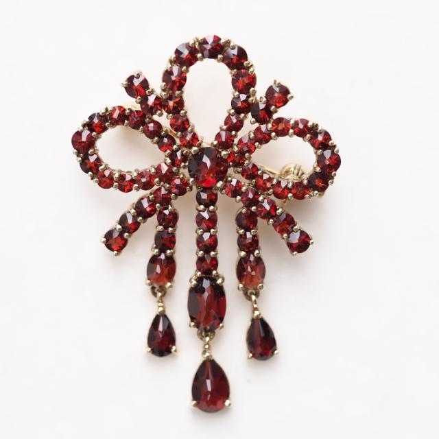 リボンの下部には3粒のガーネットが可愛らしく揺れて輝きます。