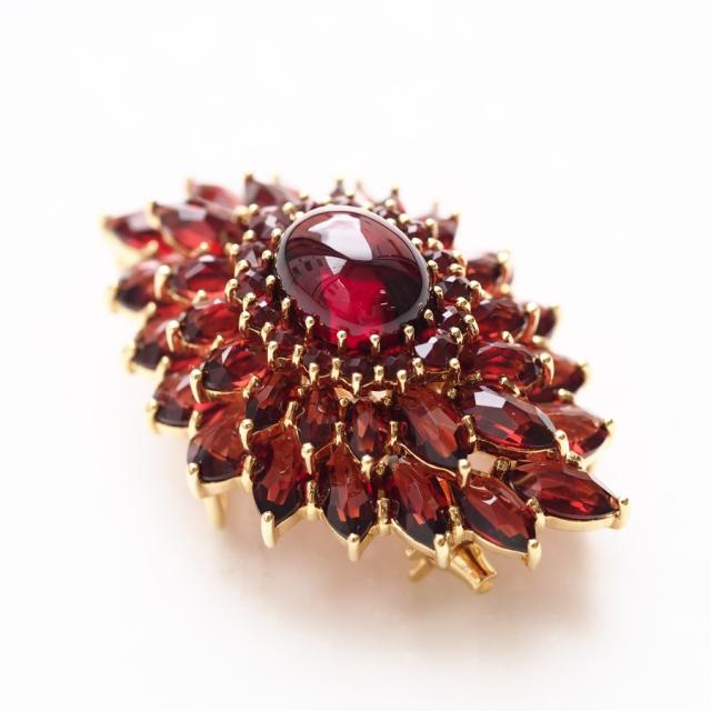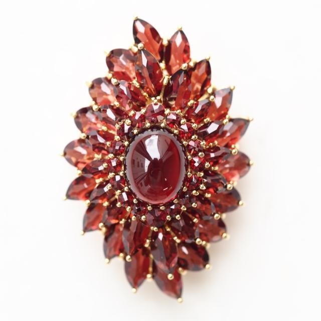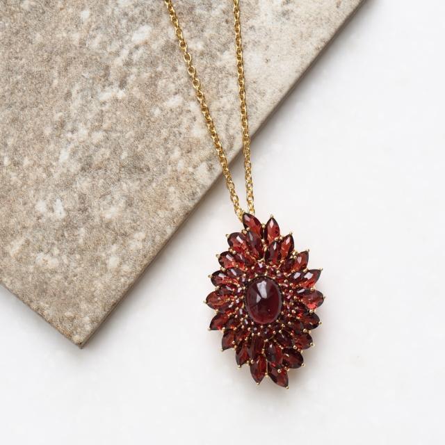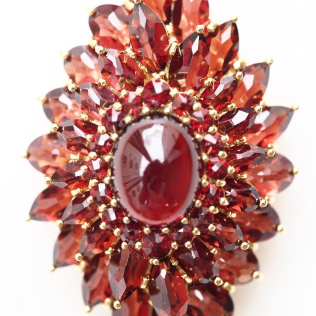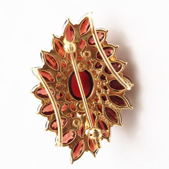 花弁いっぱいにガーネットを使用した碌山らしいペンダントブローチ。