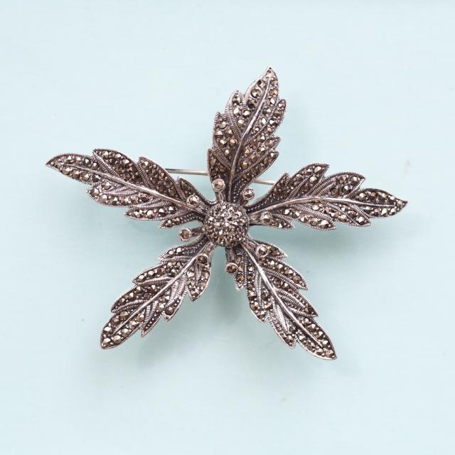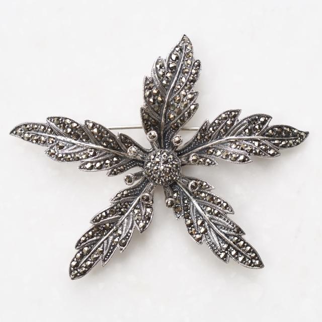 輝きが美しいマーカサイトをたっぷり使用したフラワーモチーフのブローチ。