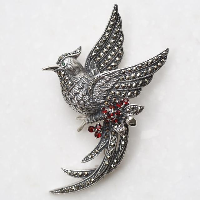ROKUZAN トロピカルバード ブローチ ピンブローチ シルバー925 エメラルド ガーネット マーカサイト 碌山ジュエリー ブランド レディース 女性 彼女