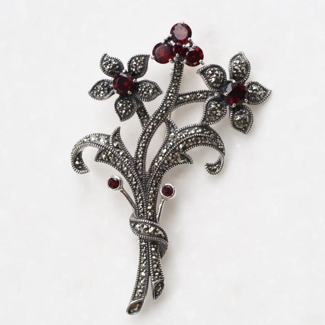 ROKUZAN ガーネット 花束 ブローチ ピンブローチ シルバー925 マーカサイト 碌山ジュエリー ブランド レディース 女性 彼女 娘 妻 誕生日 記念日