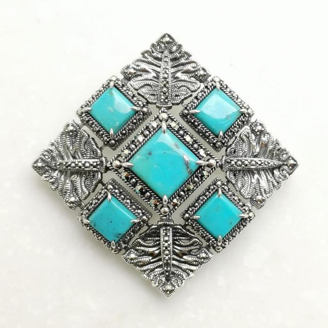 ROKUZAN ターコイズ スクエア ブローチ ペンダントトップ (チェーンなし) ネックレス ペンダント トップ ヘッド シルバー925 マーカサイト