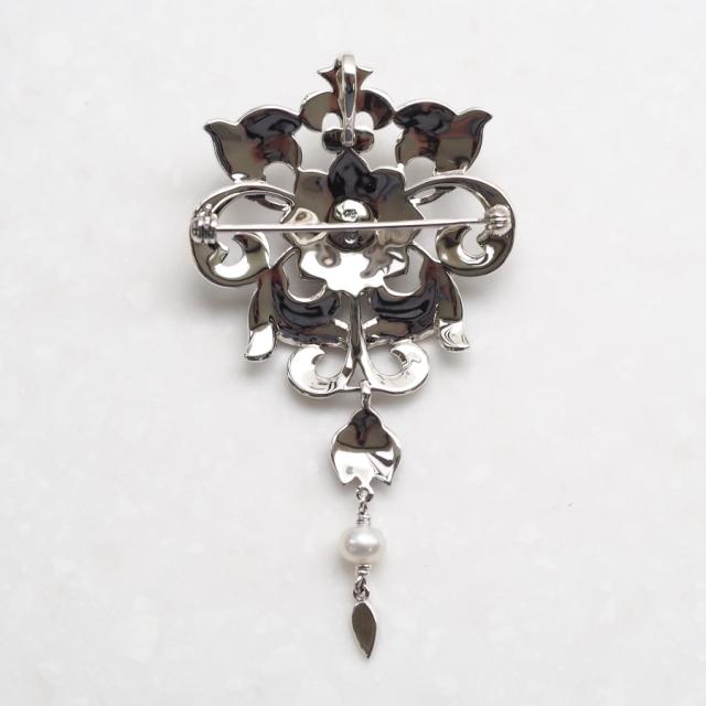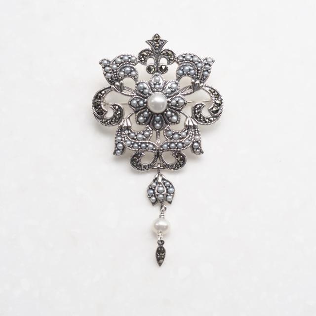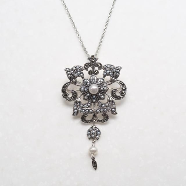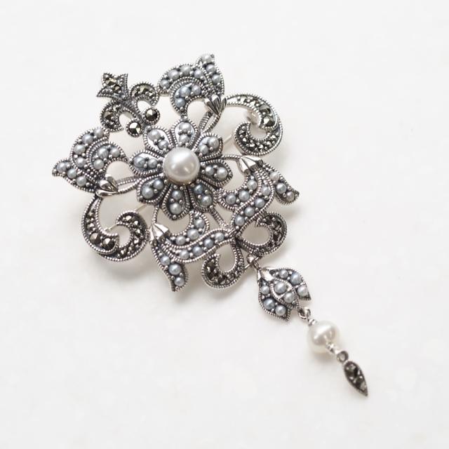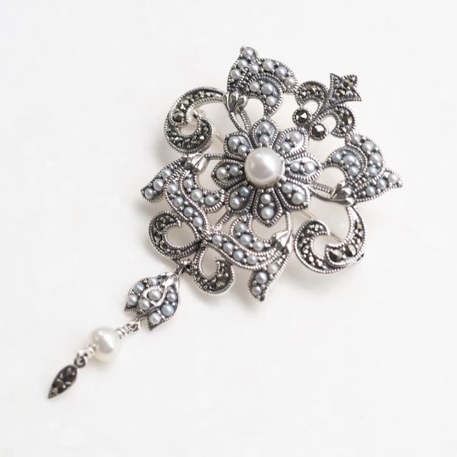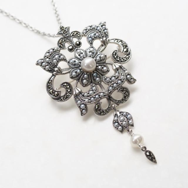 シードパールとマーカサイトをふんだんにあしらったペンダントブローチです。