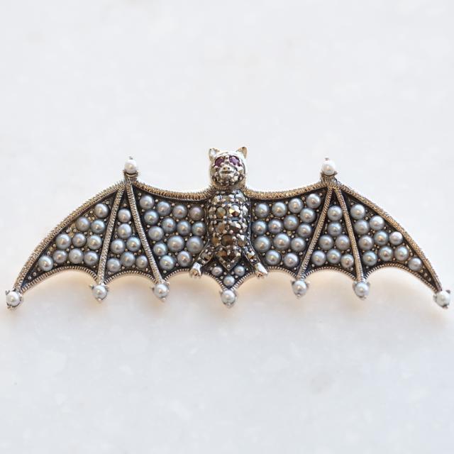 ROKUZAN シードパール コウモリ ブローチ ピンブローチ シルバー925 ルビー マーカサイト パール 真珠 碌山ジュエリー ブランド レディース 女性 彼女