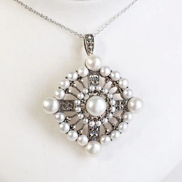 ROKUZAN パール マルカジット アールデコ ブローチ ペンダントトップ (チェーンなし) ネックレス ペンダント トップ ヘッド シルバー925 マーカサイト