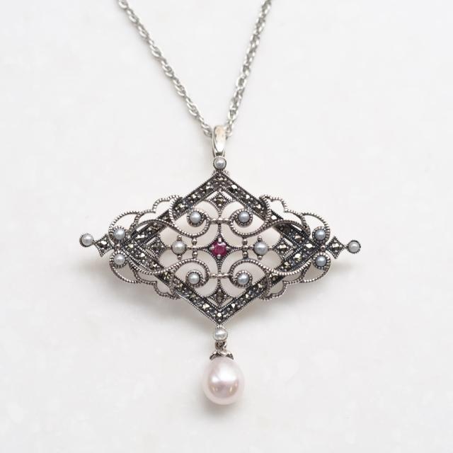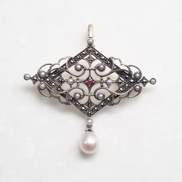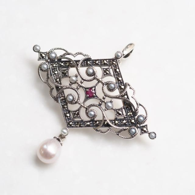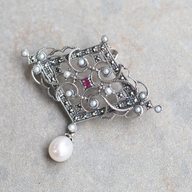 シルバー925、ルビー、パール(真珠)、マーカサイト