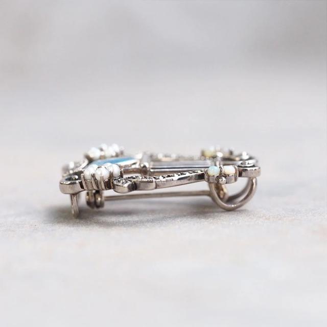 シードパールとカボションのオパールを散らし、ダブレットオパールの美しい色合いが引き立つようにデザインをしています。