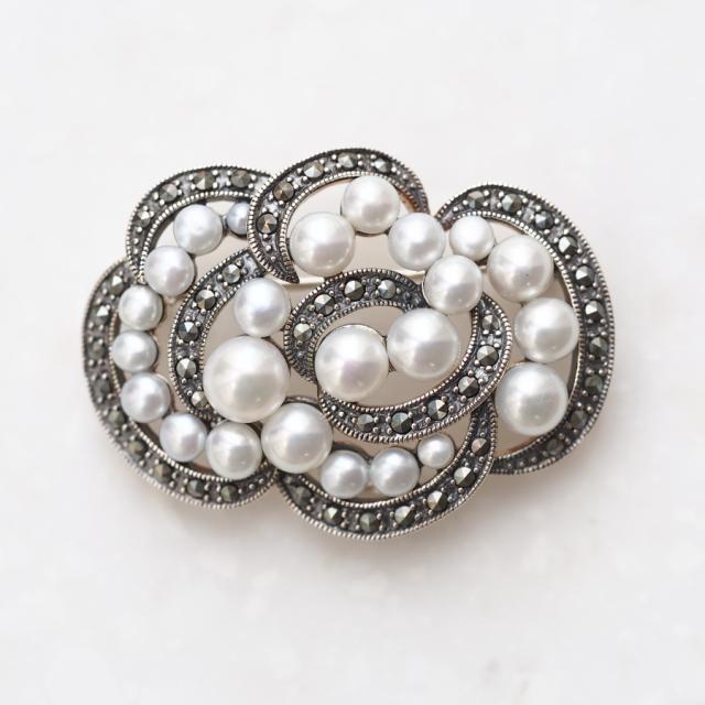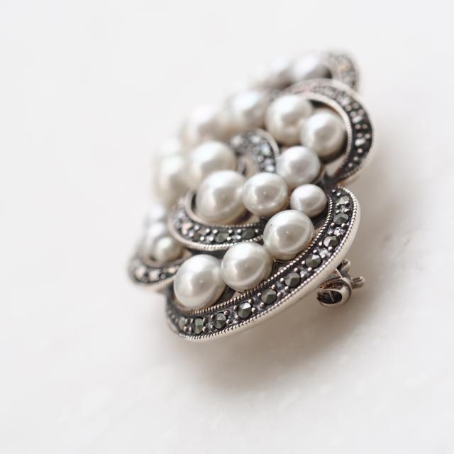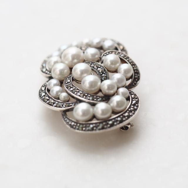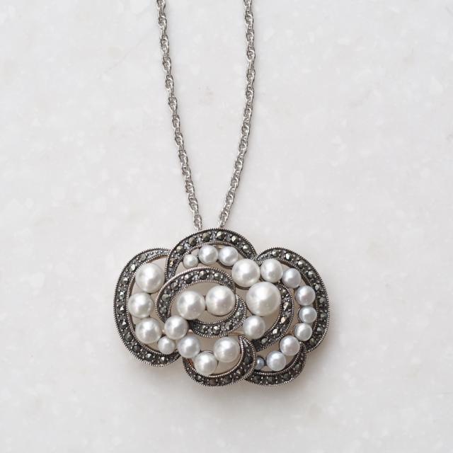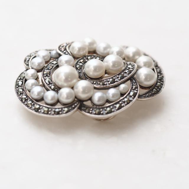 ROKUZAN パール マーカサイト ブローチ ペンダントトップ (チェーンなし) ネックレス ペンダント トップ ヘッド シルバー925 パール 真珠