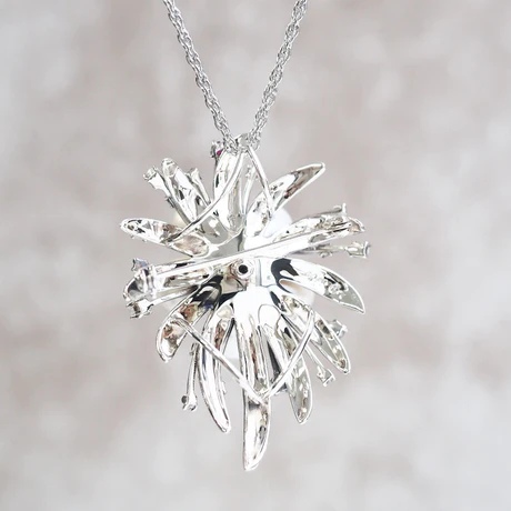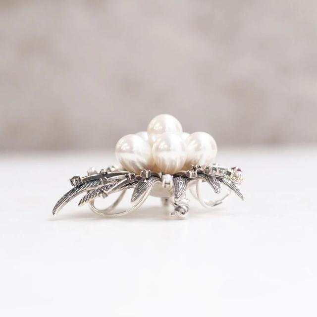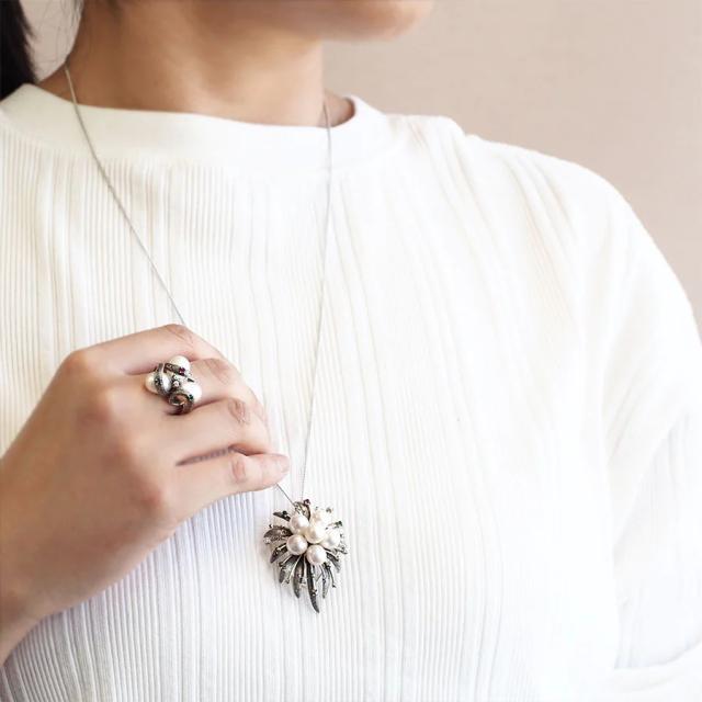 クラシカルな細工と花のような大胆な華やぎと、アンティークジュエリーの雰囲気を持ちながらも近代のアート感覚も持ち合わせた表情の豊かさが魅力な作品です。