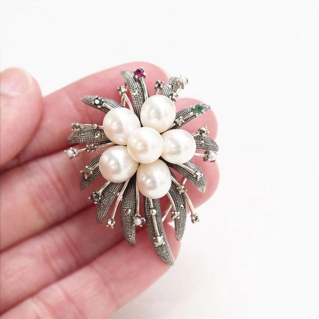 ROKUZAN パール プレシャスストーン モダン ブローチ ペンダントトップ (チェーンなし) ネックレス ペンダント トップ ヘッド シルバー925 エメラルド