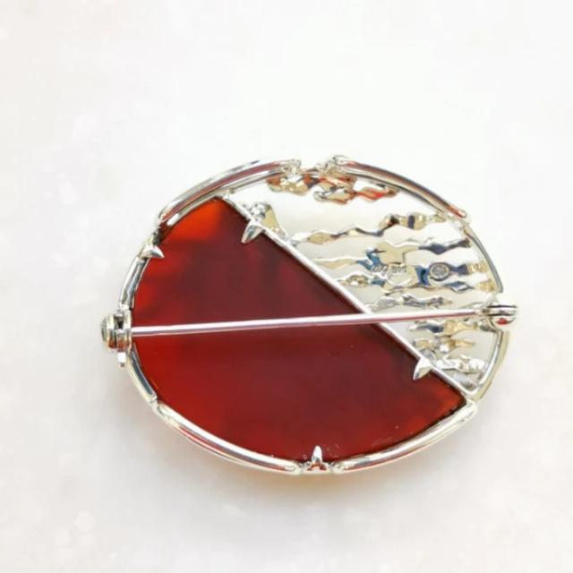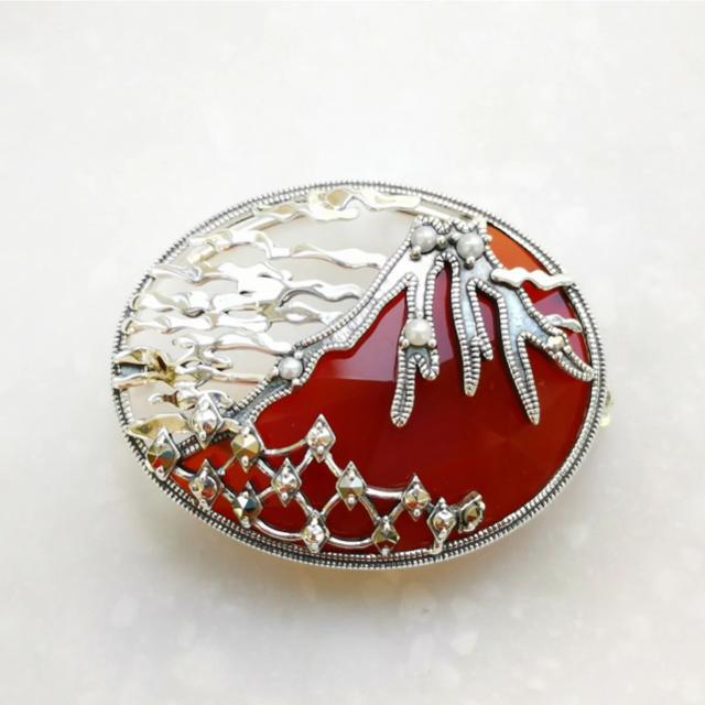 ROKUZAN カーネリアン 赤富士 ブローチ ペンダントトップ (チェーンなし) ネックレス ペンダント トップ ヘッド シルバー925 マーカサイト パール