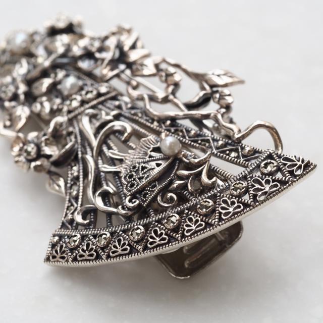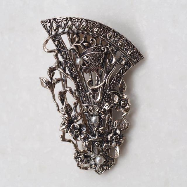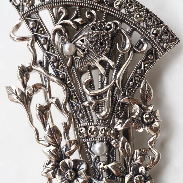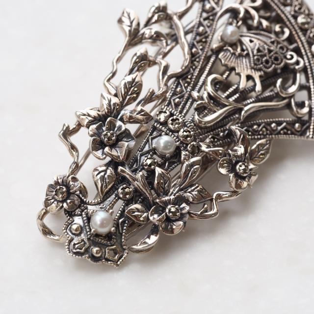 ROKUZAN 沙羅双樹 クリップ ブローチ ペンダントトップ (チェーンなし) ネックレス ペンダント トップ ヘッド シルバー925 パール 真珠 マーカサイト