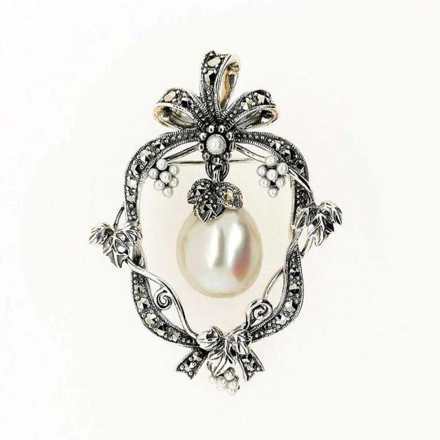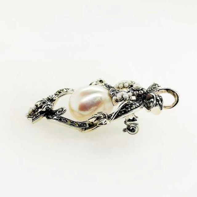 ROKUZAN パール マルカジット ブローチ ペンダントトップ (チェーンなし) ネックレス ペンダント トップ ヘッド シルバー925 マーカサイト パール
