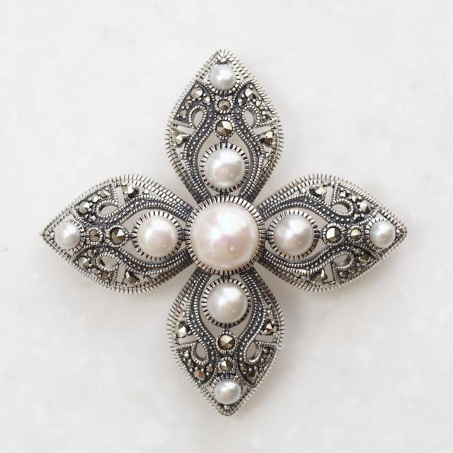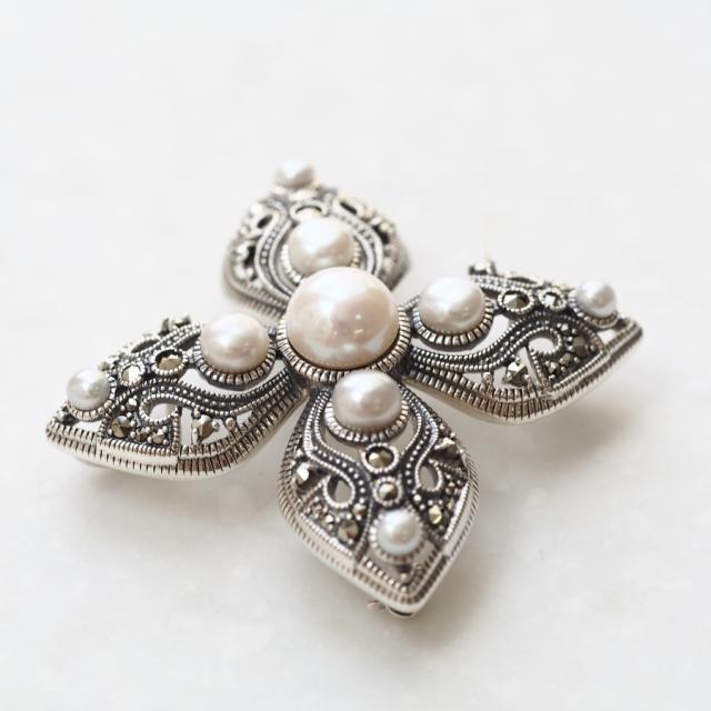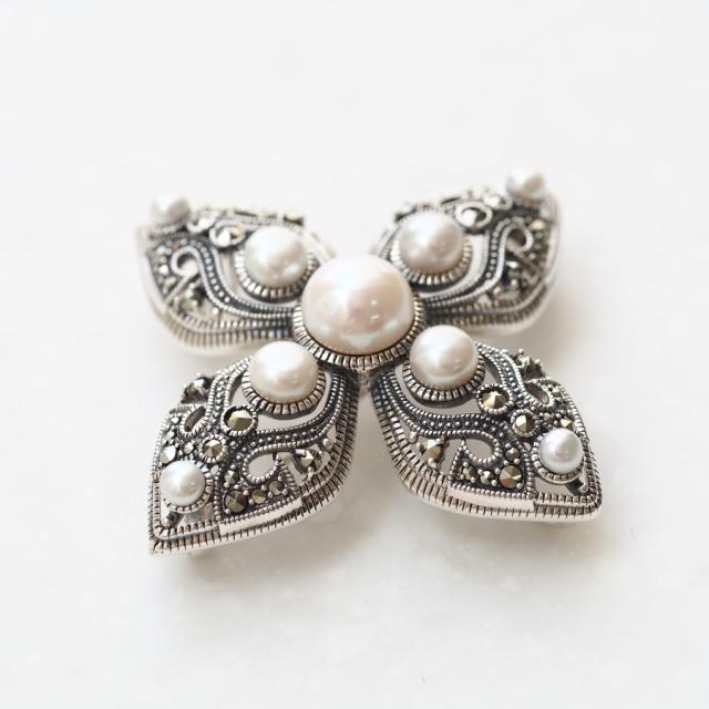 ROKUZAN パール マーカサイト ブローチ ペンダントトップ (チェーンなし) ネックレス ペンダント トップ ヘッド シルバー925 パール 真珠