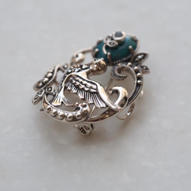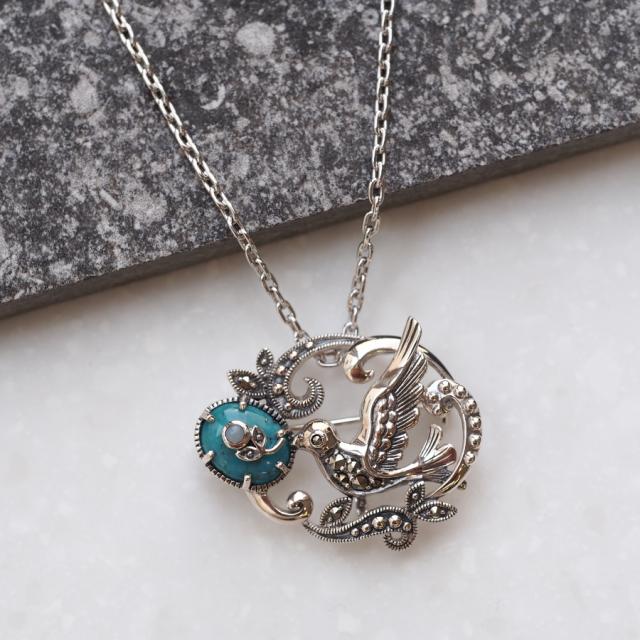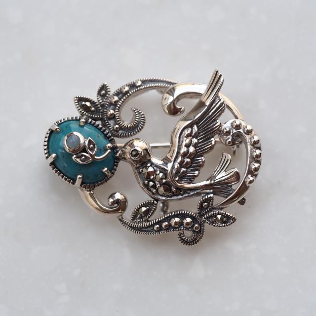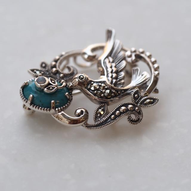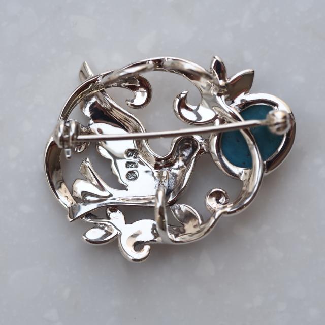 童話の青い鳥とロビンエッグをイメージしたとてもロマンチックなペンダントブローチです。