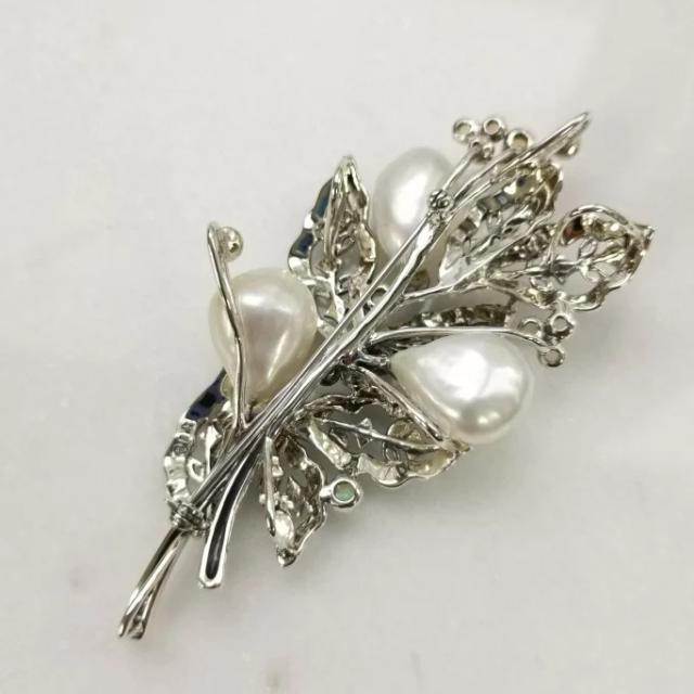 大きな大きなバロックパールをぜいたくに使ったリーフと果実のブローチ。