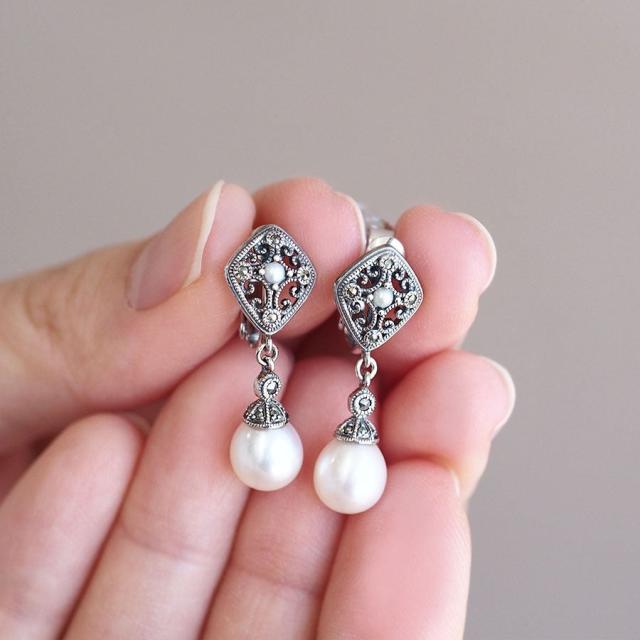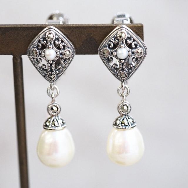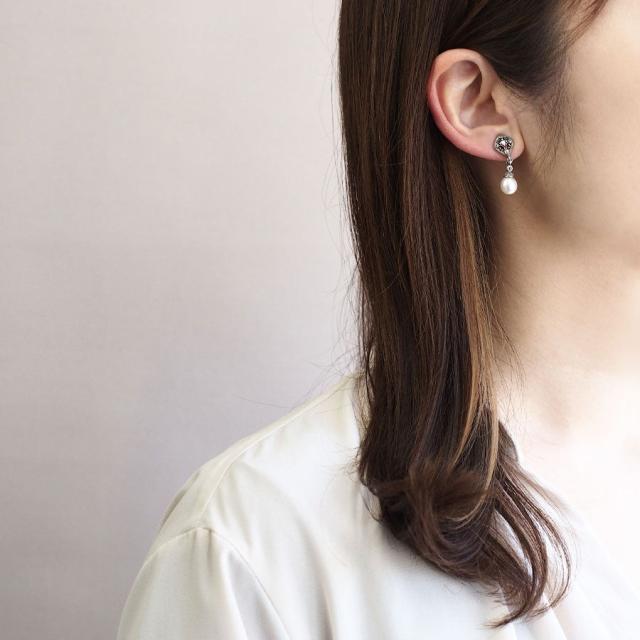 ROKUZAN パール エレガント ピアス イヤリング 選べる 2P 両耳用 ノンホールピアス シルバー925 マーカサイト 真珠 碌山ジュエリー ブランド