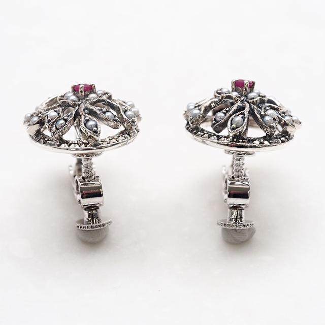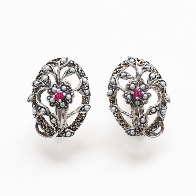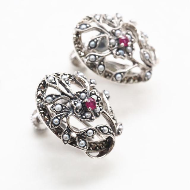 シルバー925、ルビー、パール(真珠)、マーカサイト