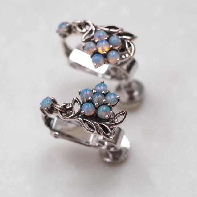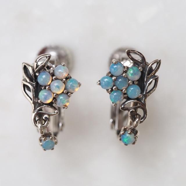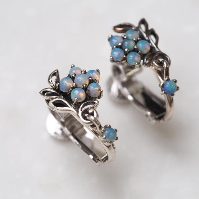虹色に輝くオパールをお花の形に並べてビクトリア時代に愛されたセンチメンタルな勿忘草にしました。