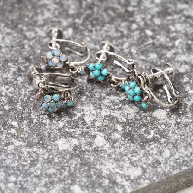 綺麗なブルーのターコイズをお花の形に並べてビクトリア時代に愛されたセンチメンタルな勿忘草にしました。