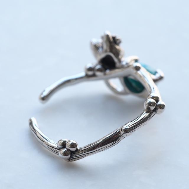 ROKUZAN ターコイズ 子猫 フリーサイズ リング イヤーカフ 兼用 1P 片耳用 指輪 ノンホールピアス イヤークリップ シルバー925 マーカサイト