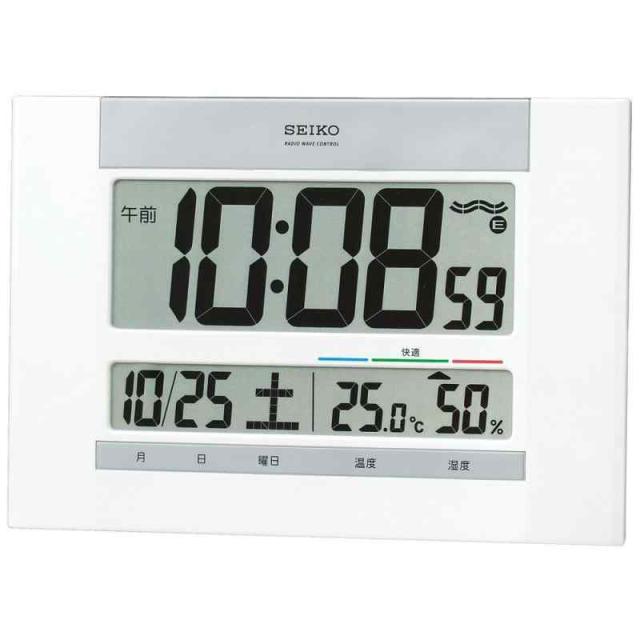 セイコークロック 掛け時計 置き時計 兼用 電波 デジタル カレンダー 快適度 温度 湿度 表示 薄型 白 パール SQ429W