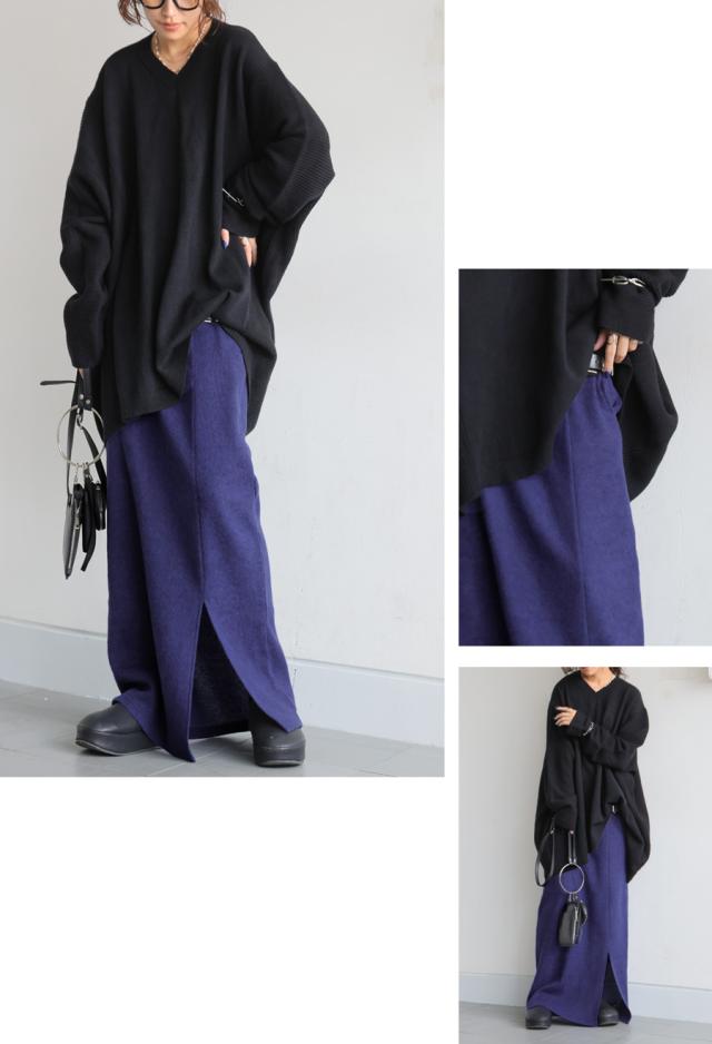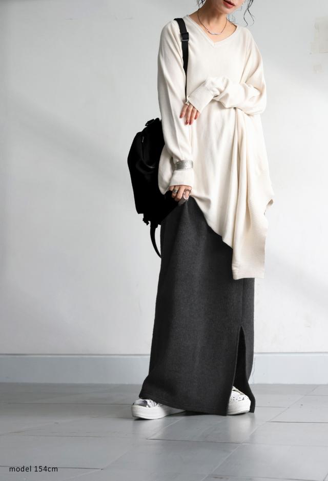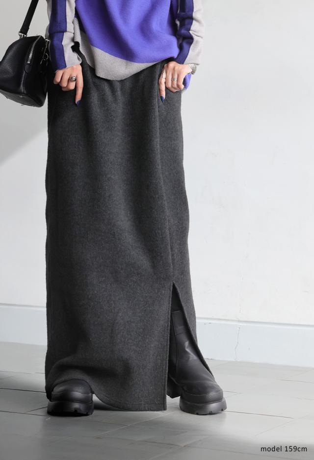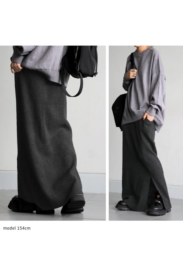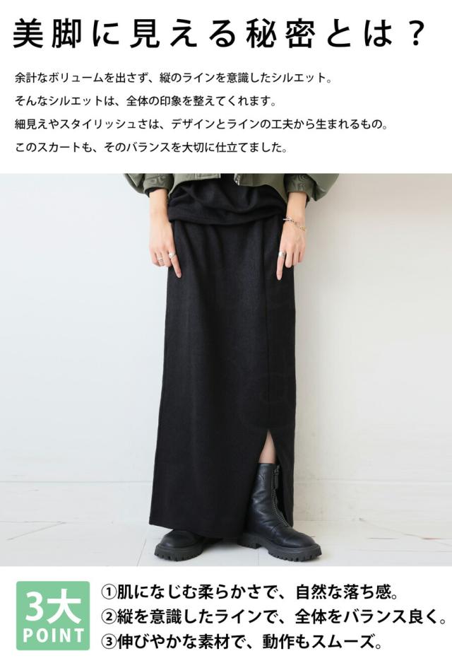 すとんと落ちる形状が美しい、ストレートシルエットのロングスカートです。