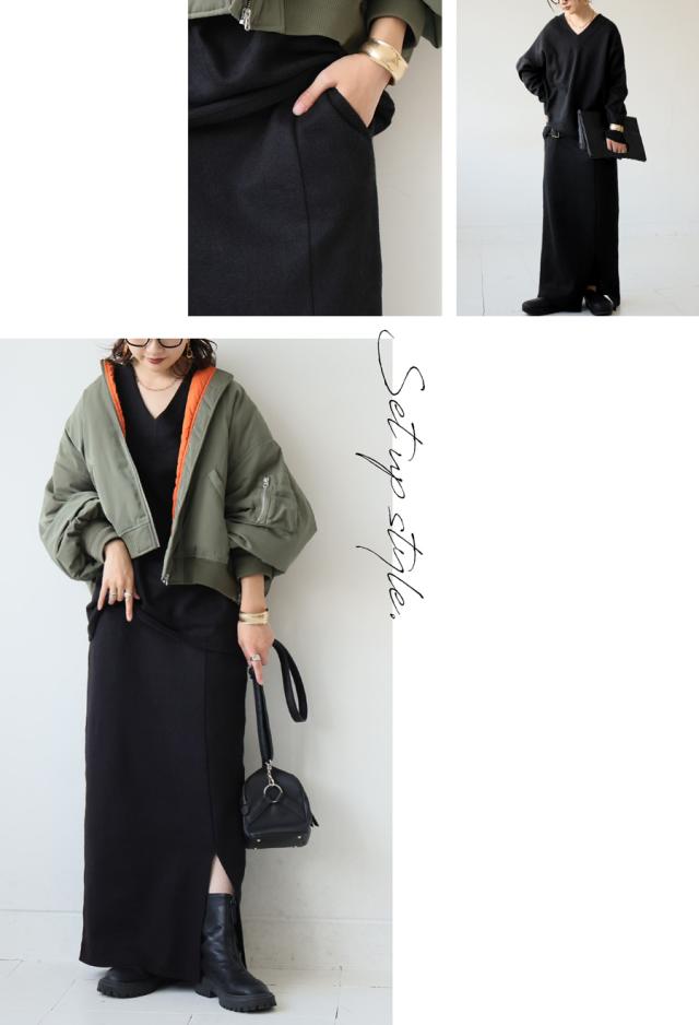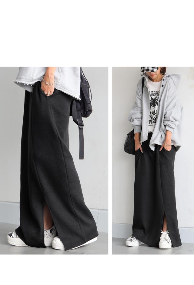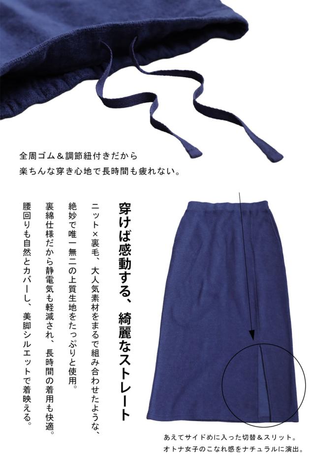 na-00514 ロングスカート ストレート 美脚 裏起毛 ウエストゴム ニットソー素材 セットアップ シンプル 無地 ストレッチ 体型カバー 通勤 カジュアル シンプル ナチュラル