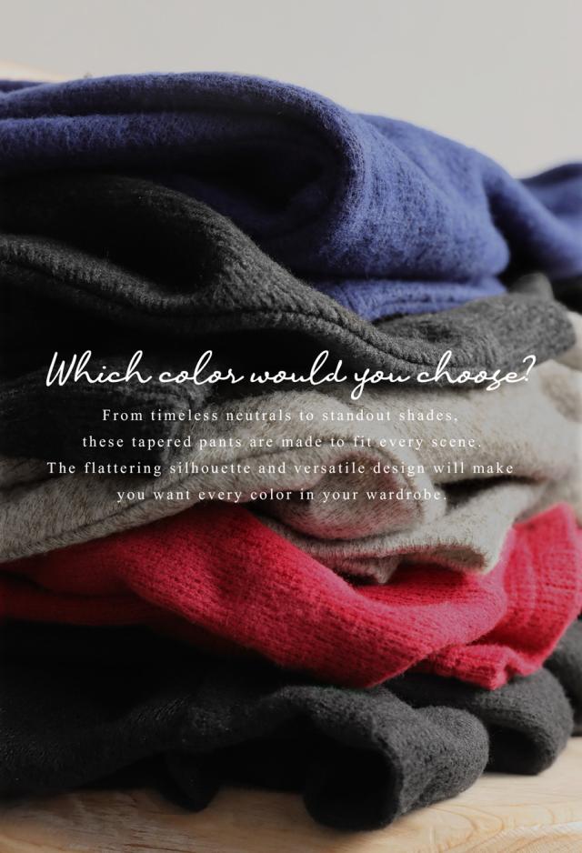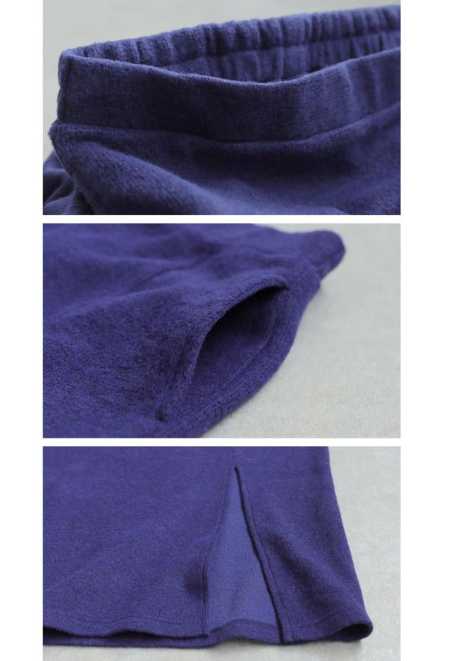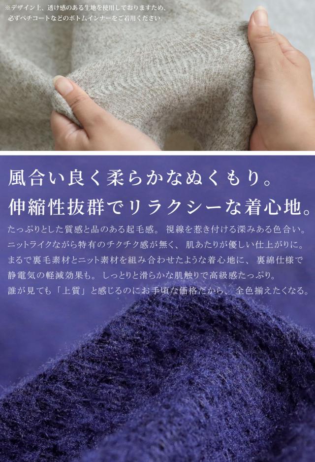 裏起毛仕立てのニットソー素材で、柔らかくふんわりとした肌触りと暖かさが魅力。