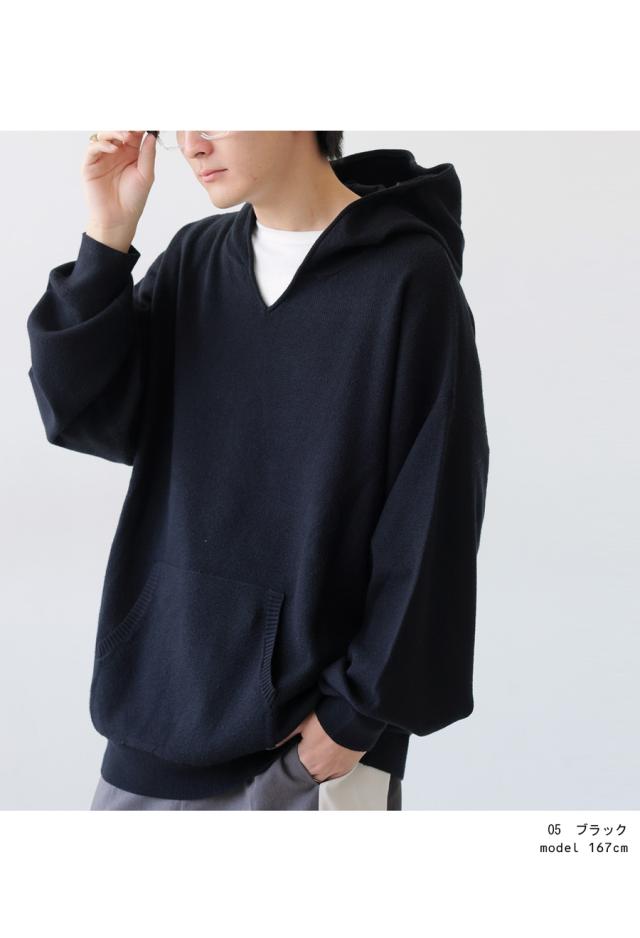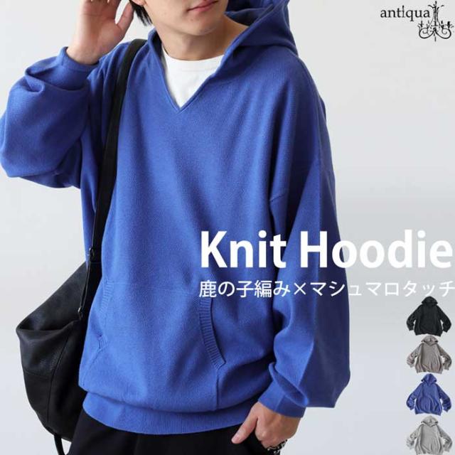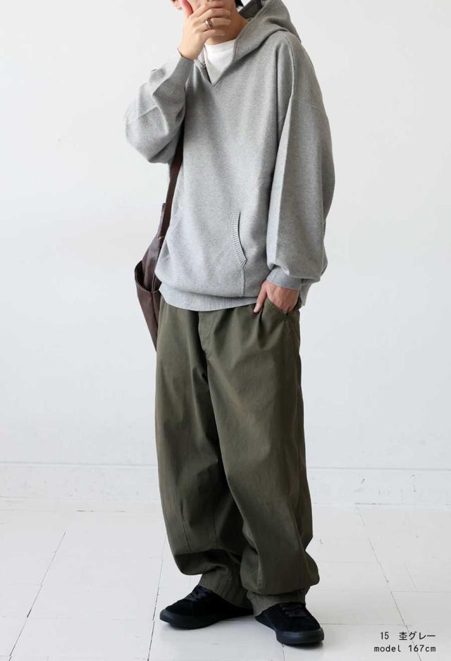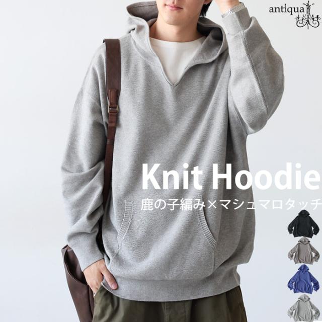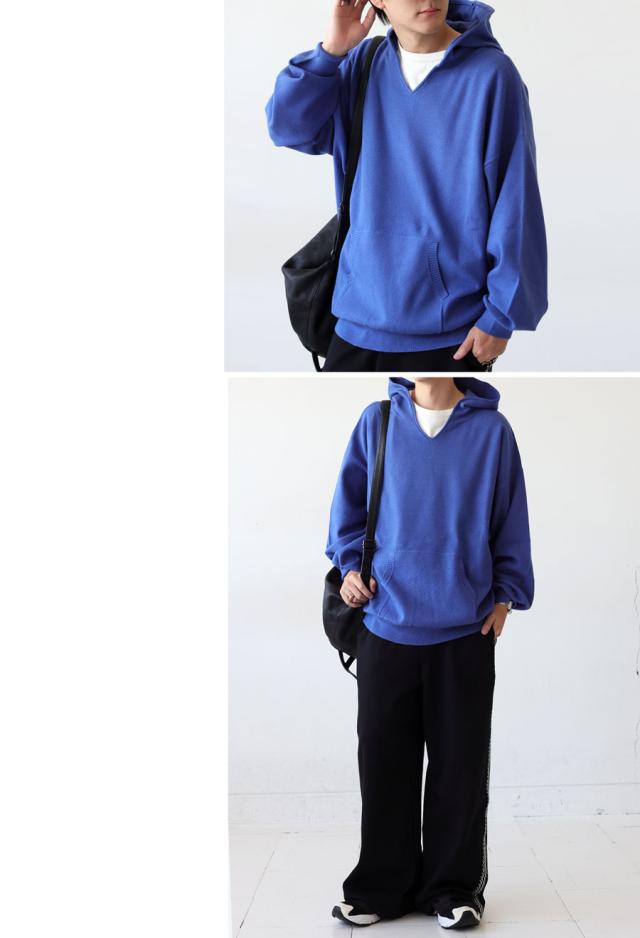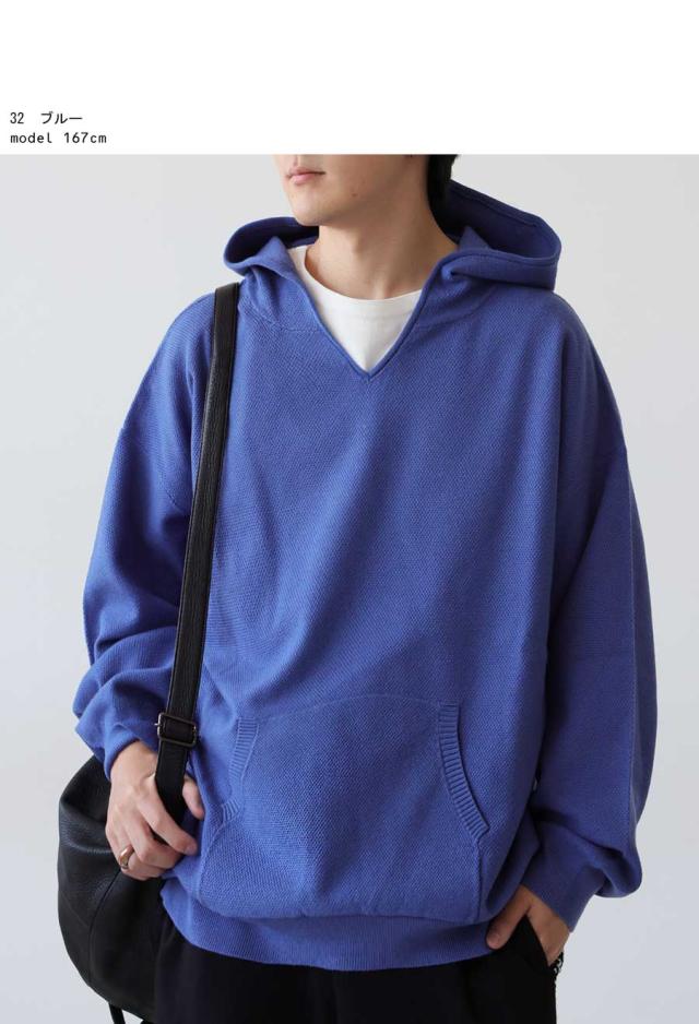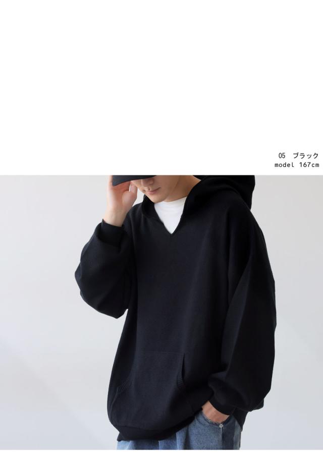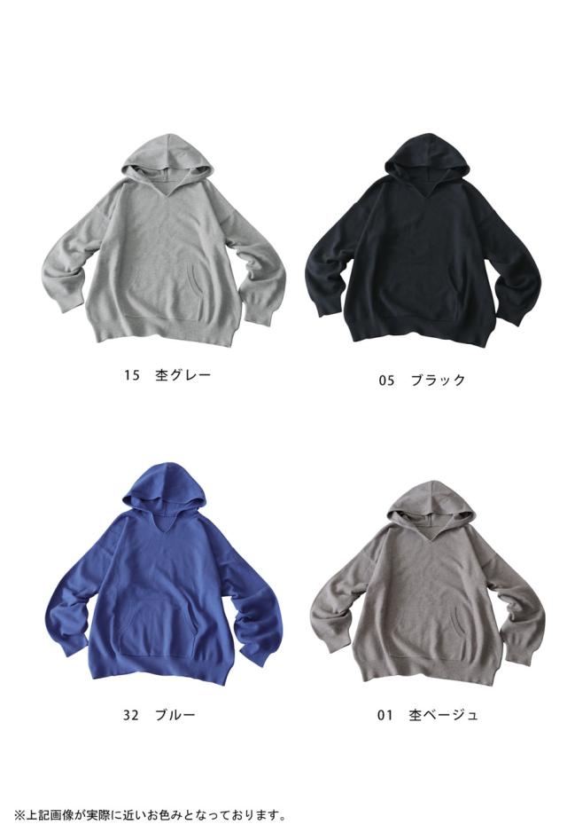 za-00282z ニットパーカー ゆったり 体型カバー 上品 抜け感 カジュアル トップス レイヤード 重ね着 V字切込み ラフ ワンマイルウェア シンプル 抜け感 ポケット付き ユニセックス