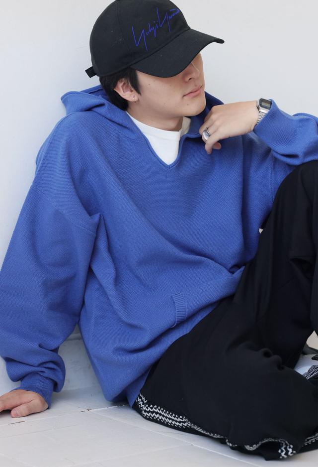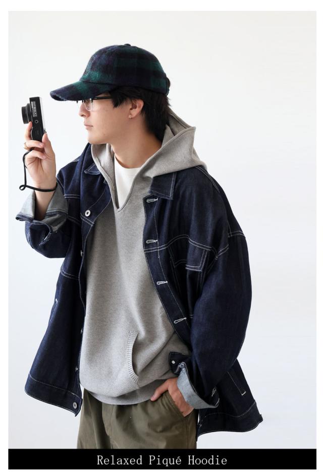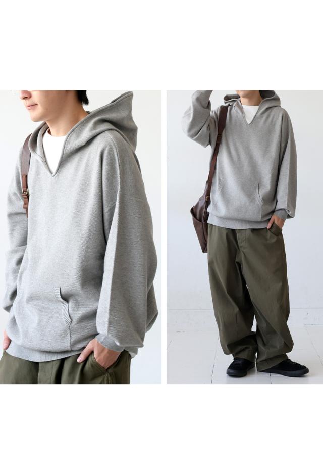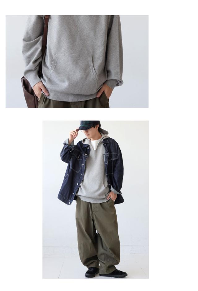 ニットパーカーをラフに、そして上品に昇華させた、大人の抜け感が魅力の一着です。