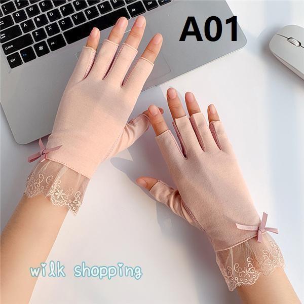 手袋 レディース UVカット手袋 日焼け防止 夏用 指切り レース リボン 運転 紫外線対策 通勤 通学 薄手 通気性 お出かけ 可愛い