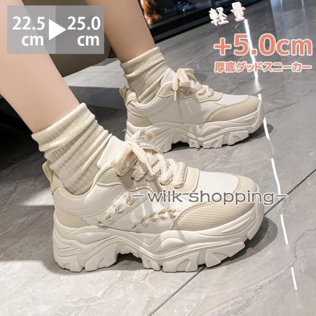 厚底 スニーカー レディース 黒 おしゃれ ベージュ ダッドスニーカー 脚長アップ ローカット 疲れにくい 歩きやすい 通気性が良い 軽量 セレブ