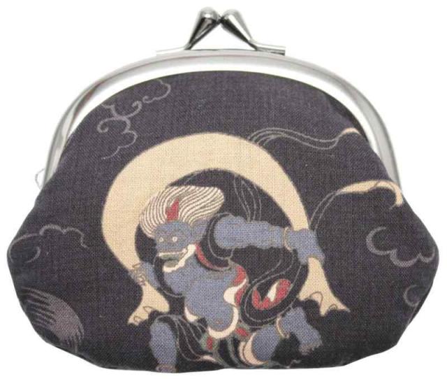 丸全(Maruzen) 和柄財布 男物3.3寸がま口 風神雷神クロ 0