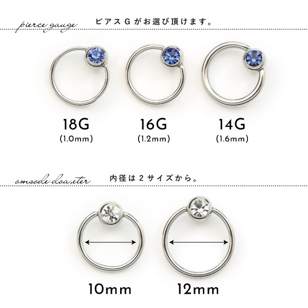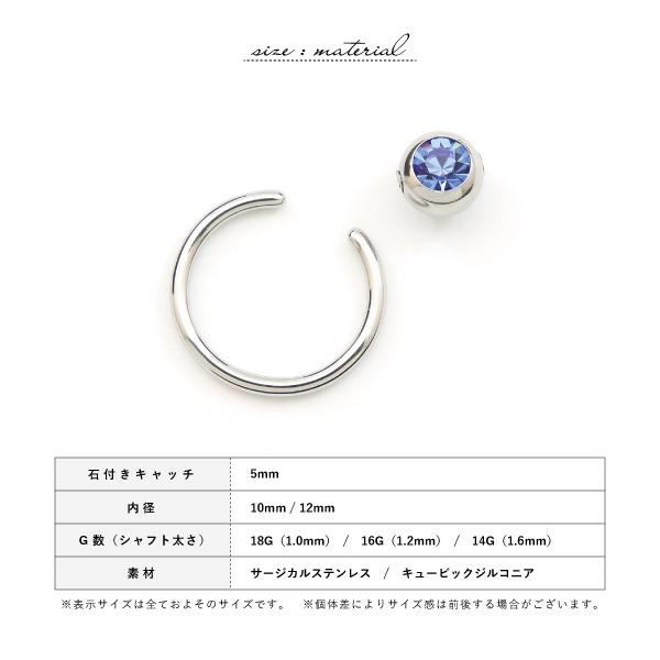 キャプティブ CBR ステンレス サージカルステンレス 316L 金属アレルギー アレルギーフリー ボディピアス 18G 16G 14G 石付き キュービックジルコニア きらきら 片耳用 メンズ レディース シンプル コーデ カスタム