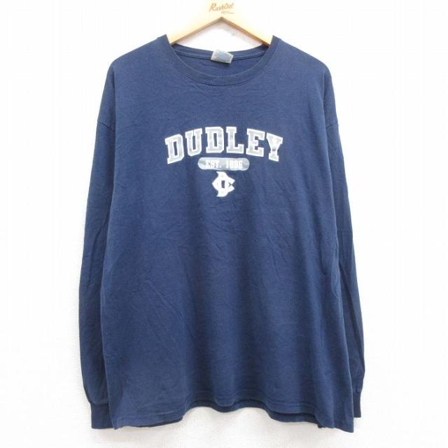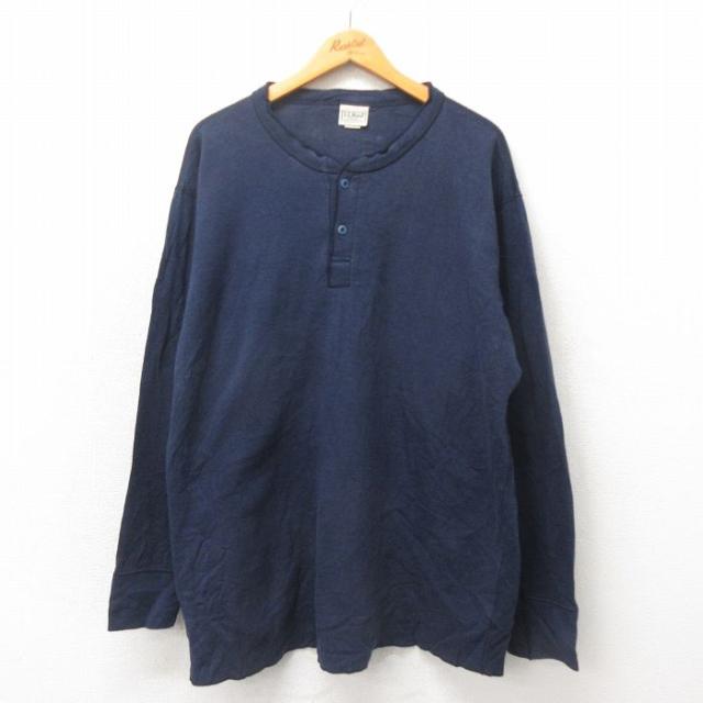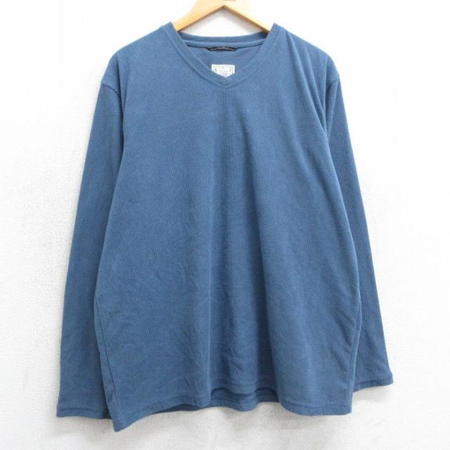 古着 フィラ FILA 長袖 ビンテージ Tシャツ メンズ 00年代 00s ビッグロゴ 刺繍 大きいサイズ Vネック 紺 ネイビー XLサイズ 中古 古着