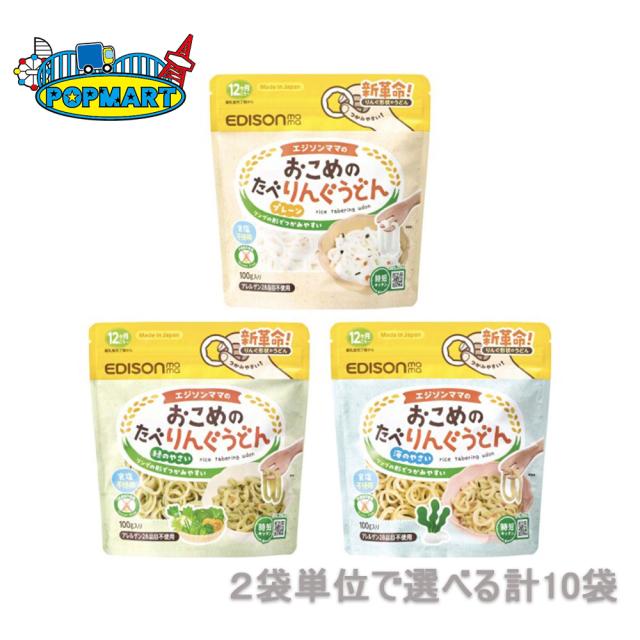 【 おこめのたべりんぐうどん 選べる計10袋セット 】 2個単位 選べるセット ベビーおやつ 離乳食 プレーン 緑のやさい 海のやさい りんぐうどん アレルゲンフリー アレルギー対応 米粉うどん お試しセット EDISONmama エジソンママ