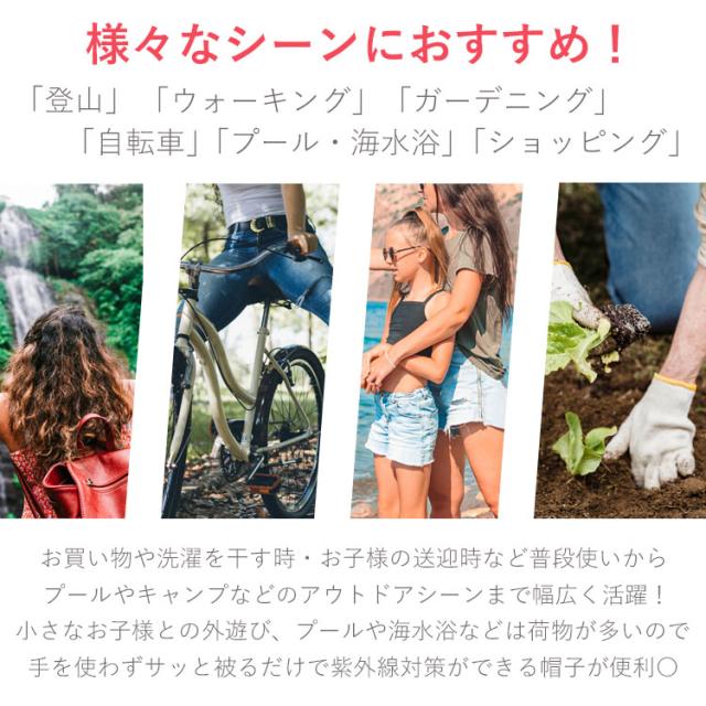 ・ツバ広で360度紫外線から守る事ができる帽子!