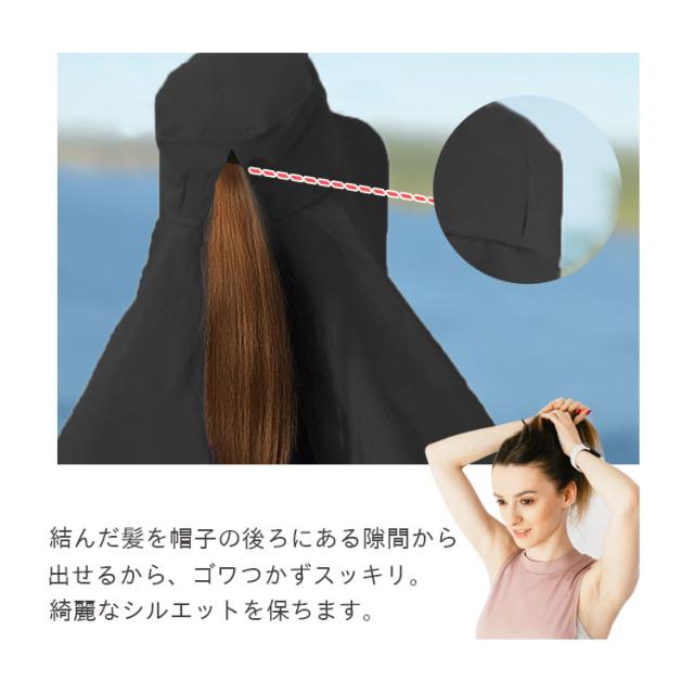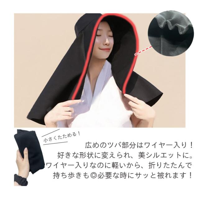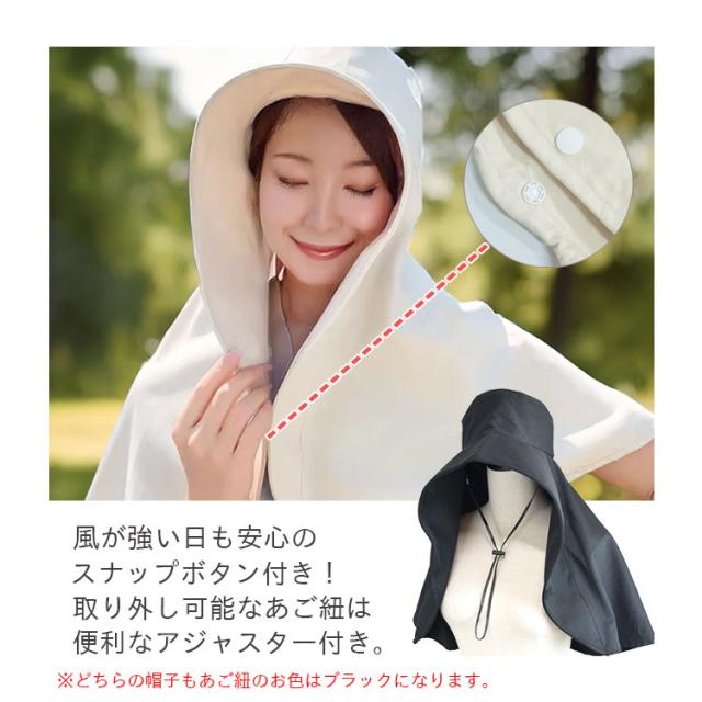 UVカット 遮熱 遮光 ポンチョ つば広帽子 レディース 大きいサイズ ワイヤー入り 折りたたみ あご紐 黒 マント つば広ハット 遮光 洗える アウトドア 農作業 キャンプ 海 プール 釣り 登山 自転車 旅行 ガーデニング